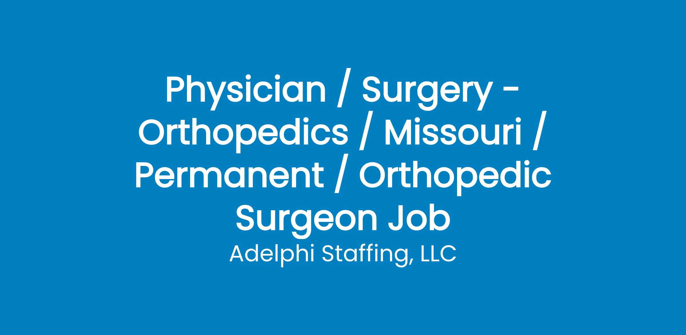 Physician / Surgery - Orthopedics / Missouri / Permanent / Orthopedic Surgeon Job