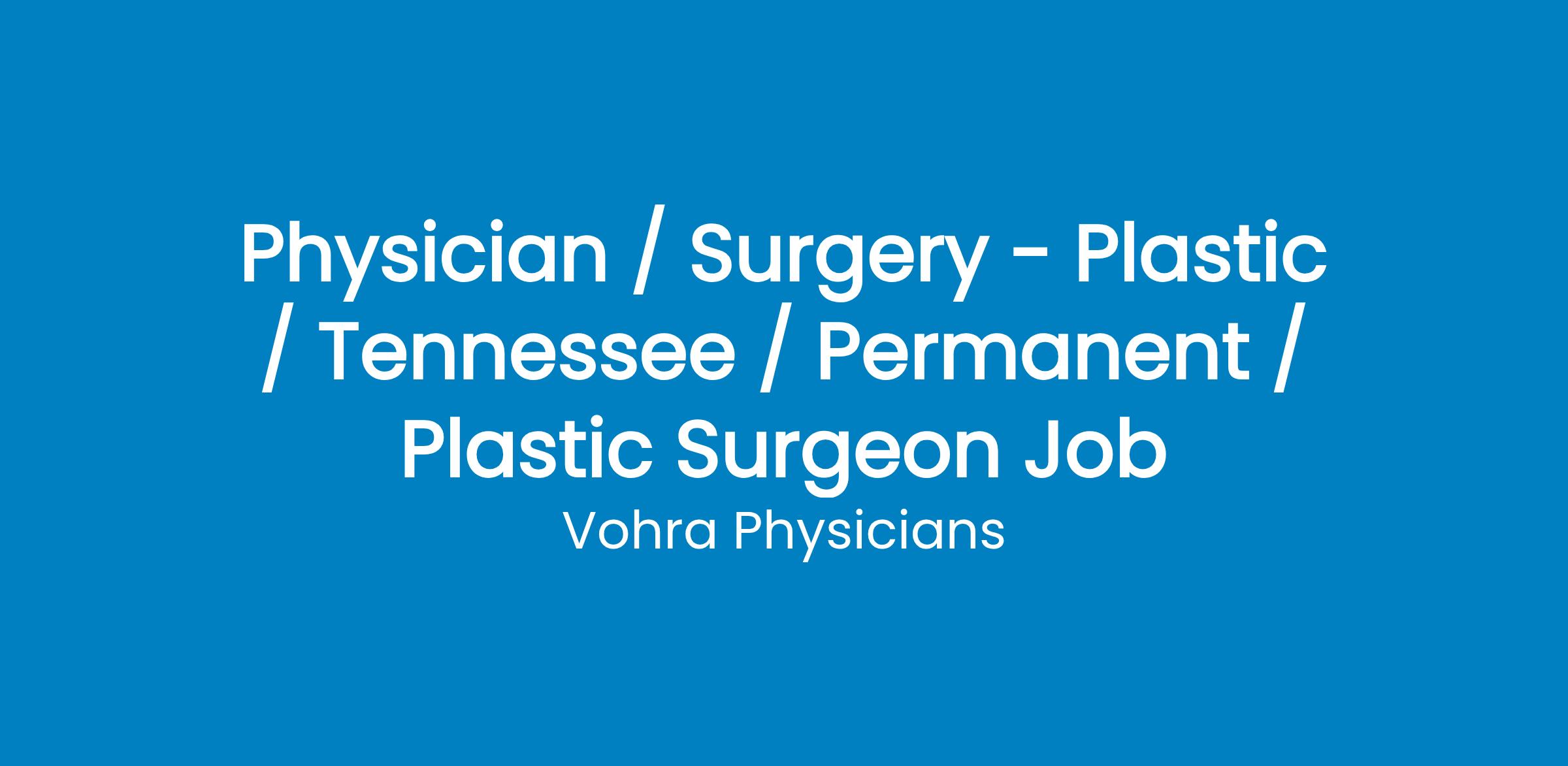 Part-Time Plastic Surgeon Position in Jackson, TN with National Wound Physician Group