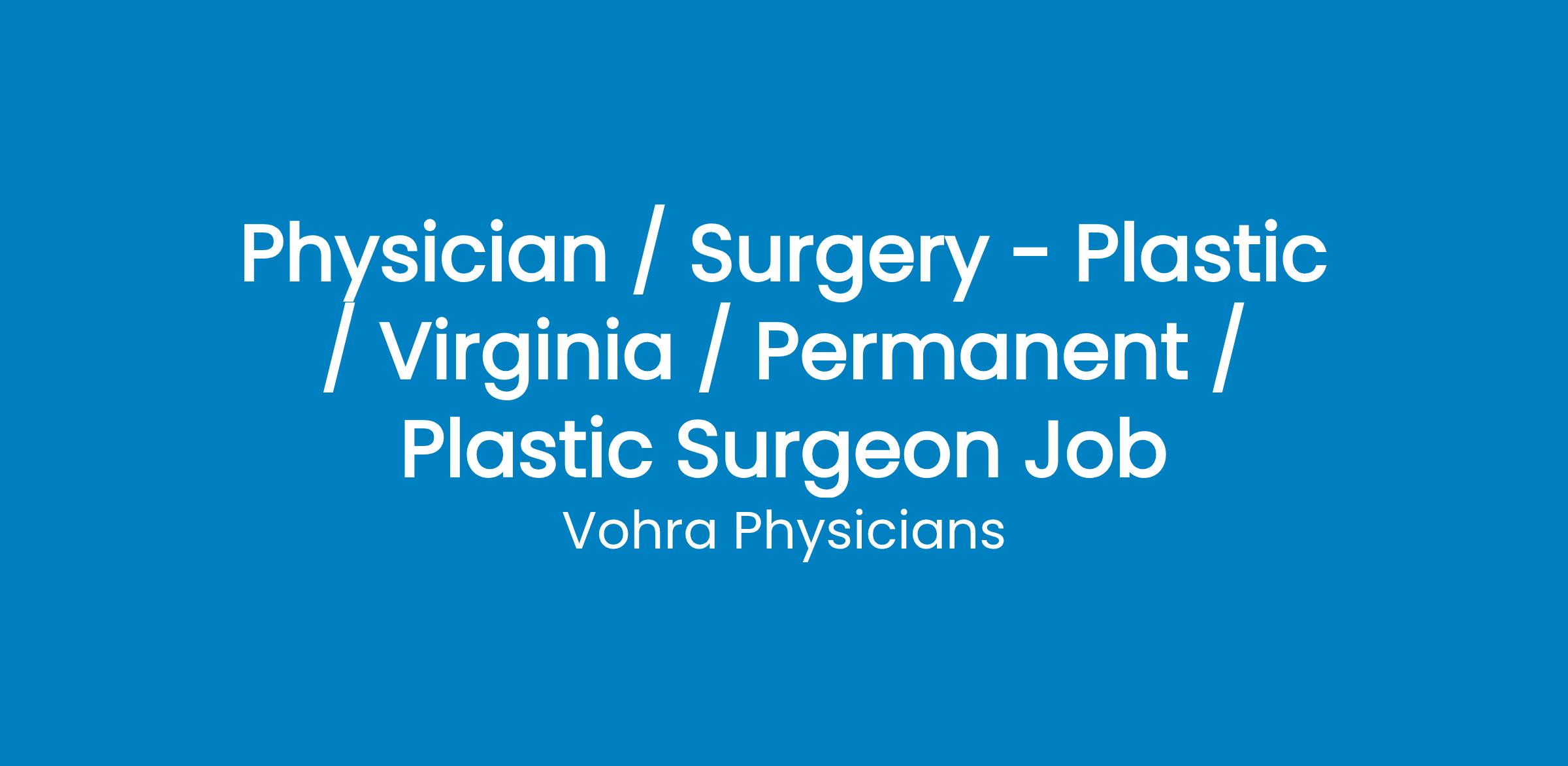 Part-Time Plastic Surgeon Position in Richmond, VA with National Wound Physician Group