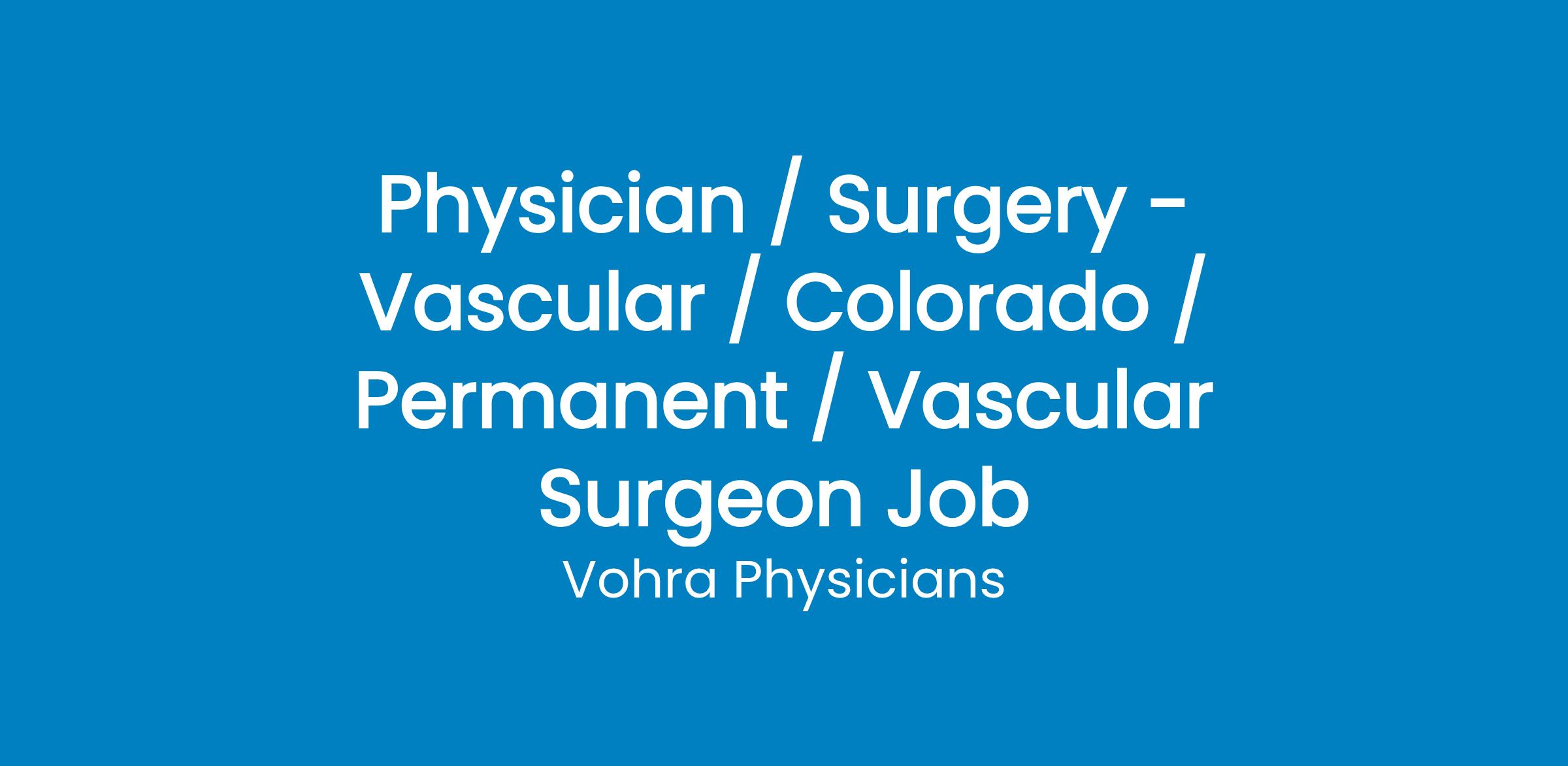 Part-Time Vascular Surgeon Position in Fort Collins, CO with National Wound Physician Group
