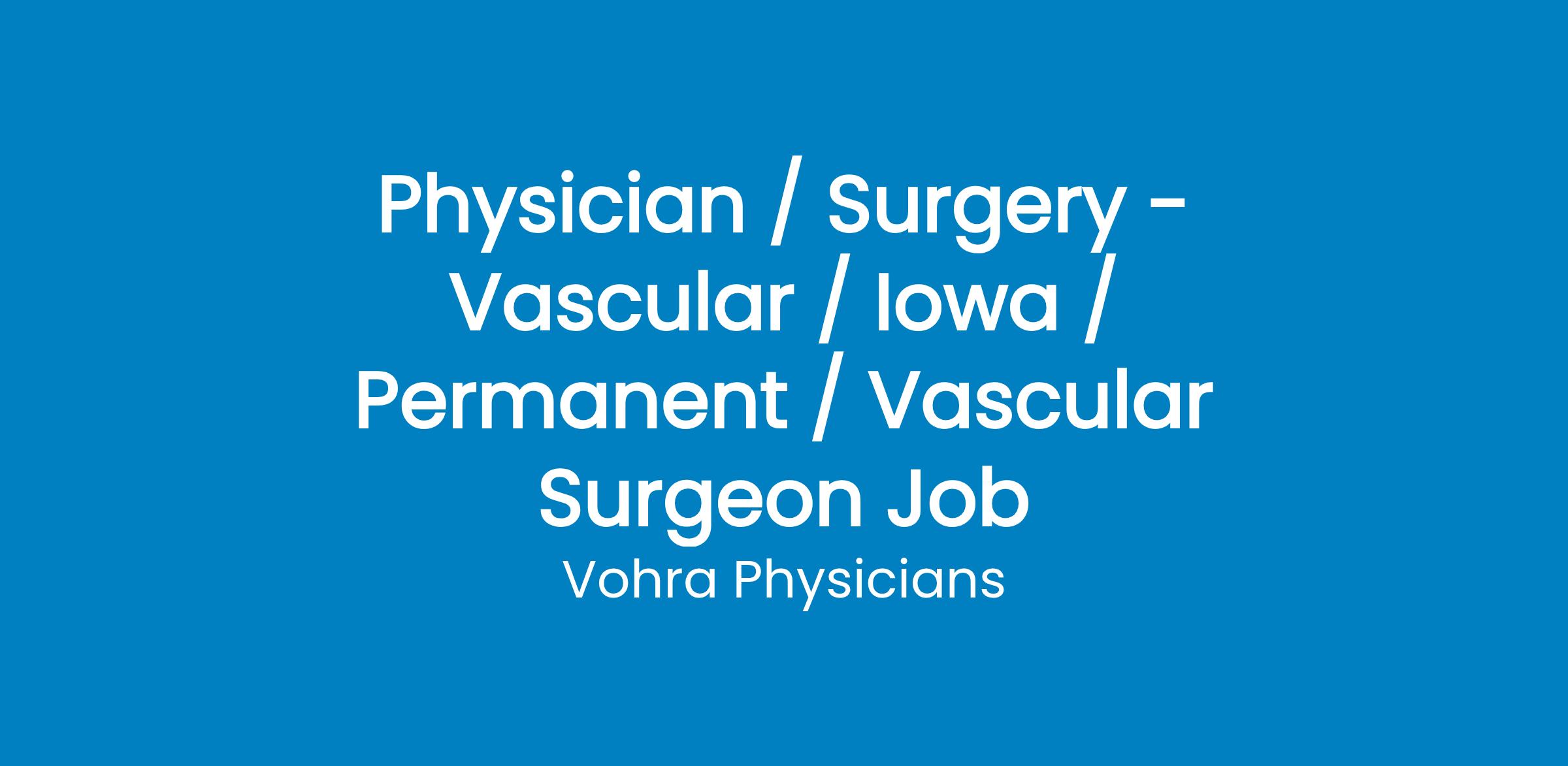 Part-Time Vascular Surgeon Position in Waterloo, IA with National Wound Physician Group