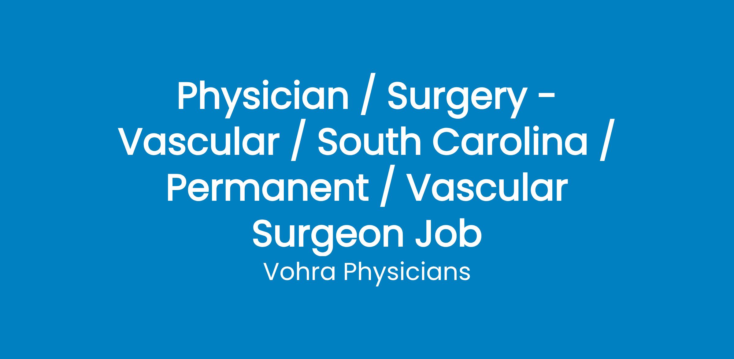 Full-Time Vascular Surgeon Position in Florence, SC with National Wound Physician Group