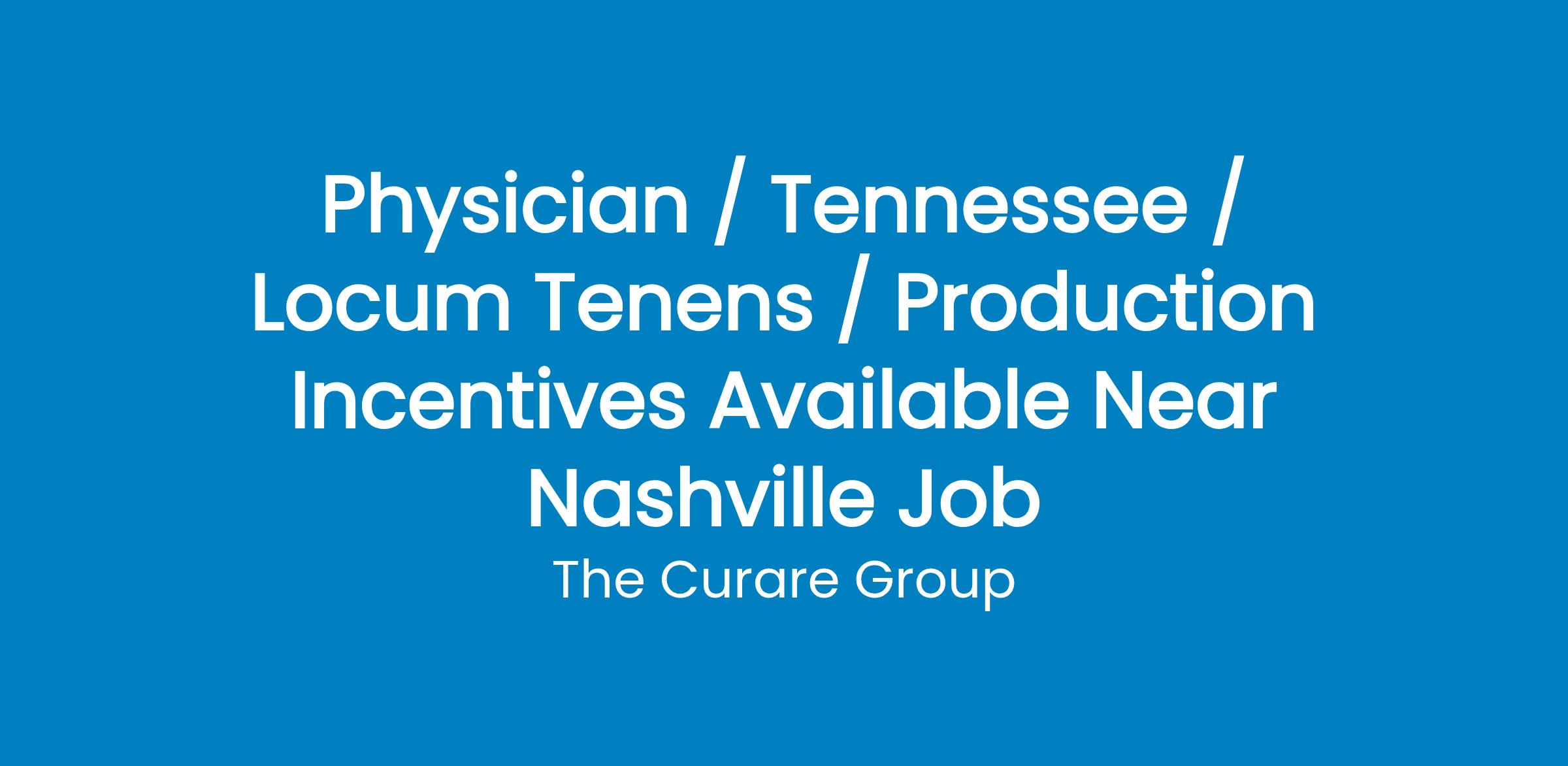 Family Medicine physician needed for hospital employed position located an easy drive from Nashville. Backed by the local hospital, a robust compensation package may include 401k, profit sharing, CME, relocation assistance, assistance with medical education debt, and more. The location is nestled in an outdoor paradise. Don't hesitate, apply today.Hospital Employee . Production Incentives available. Loan Forgiveness available. Signing Bonus available, contact us for details. Relocation Bonus available. CME money available. 401K.