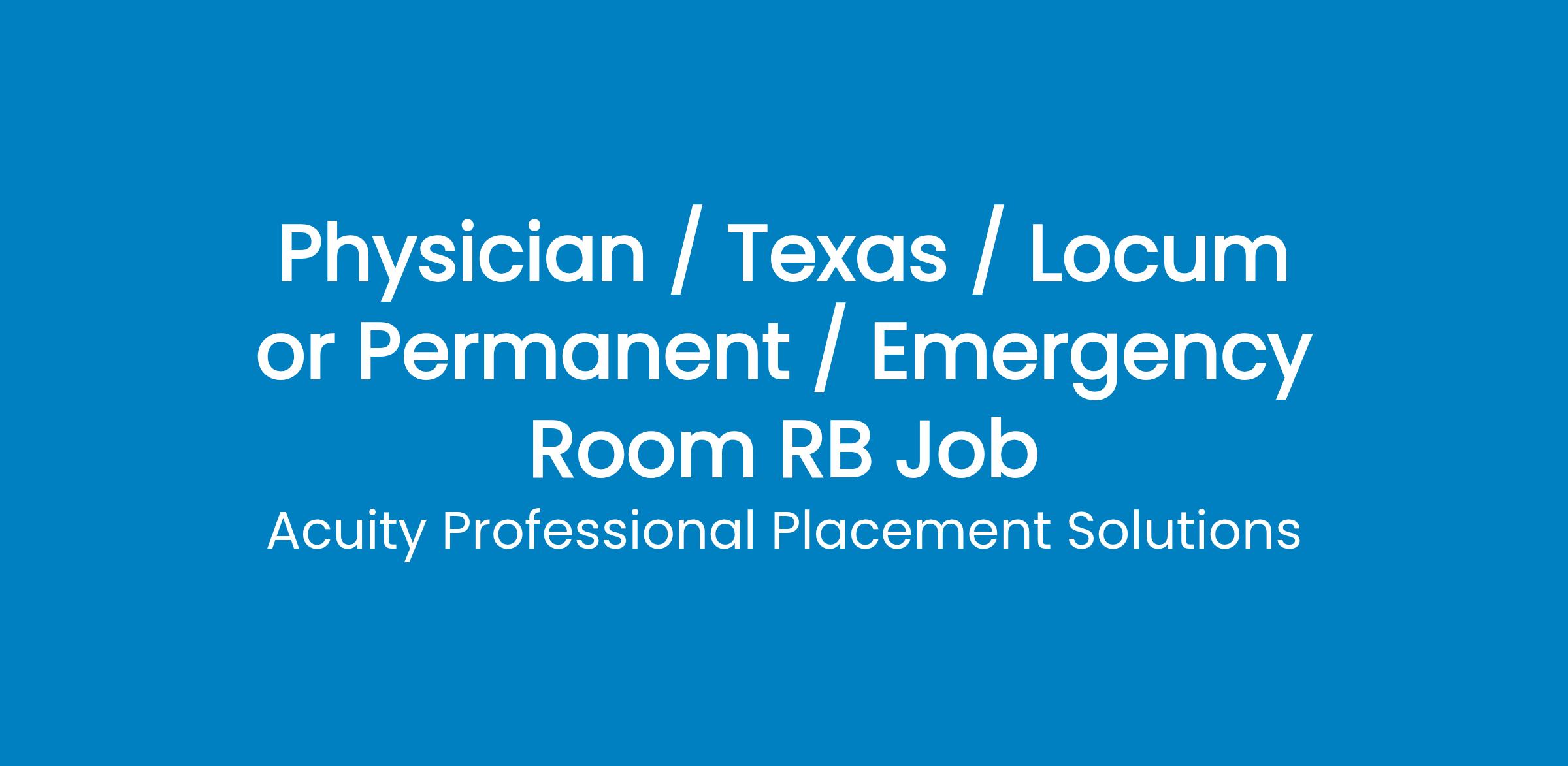 The post Emergency Room RB appeared first on Acuity Healthcare .