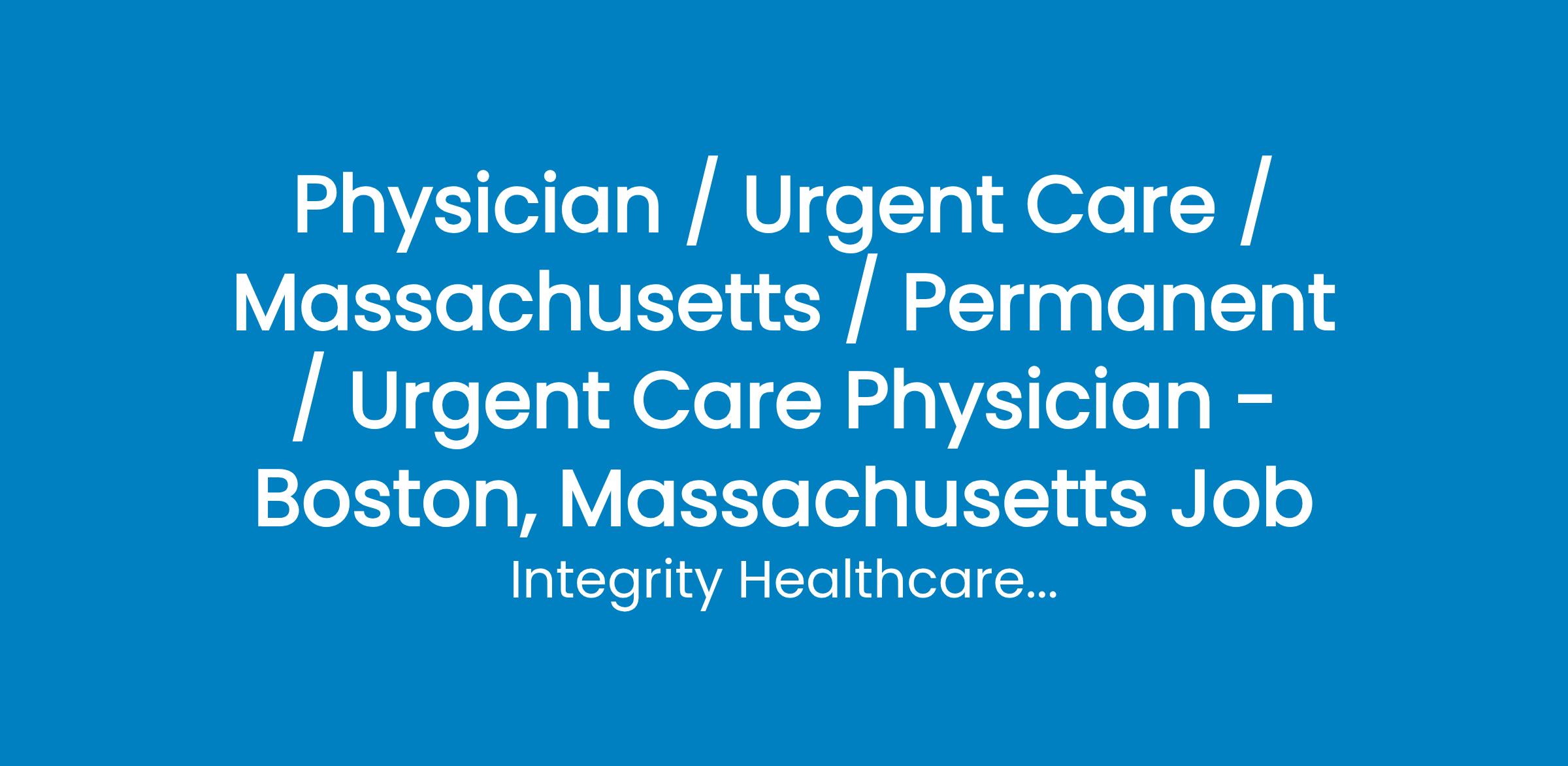 Physician / Urgent Care / Massachusetts / Permanent / Urgent Care Physician - Boston, Massachusetts Job