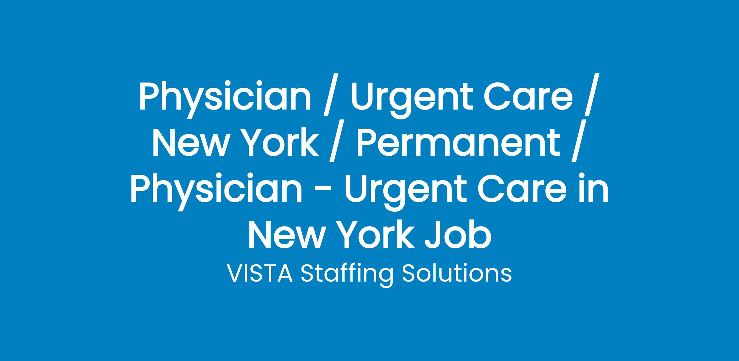 This position with one of VISTA s healthcare partners in New York might just be the opportunity for you!