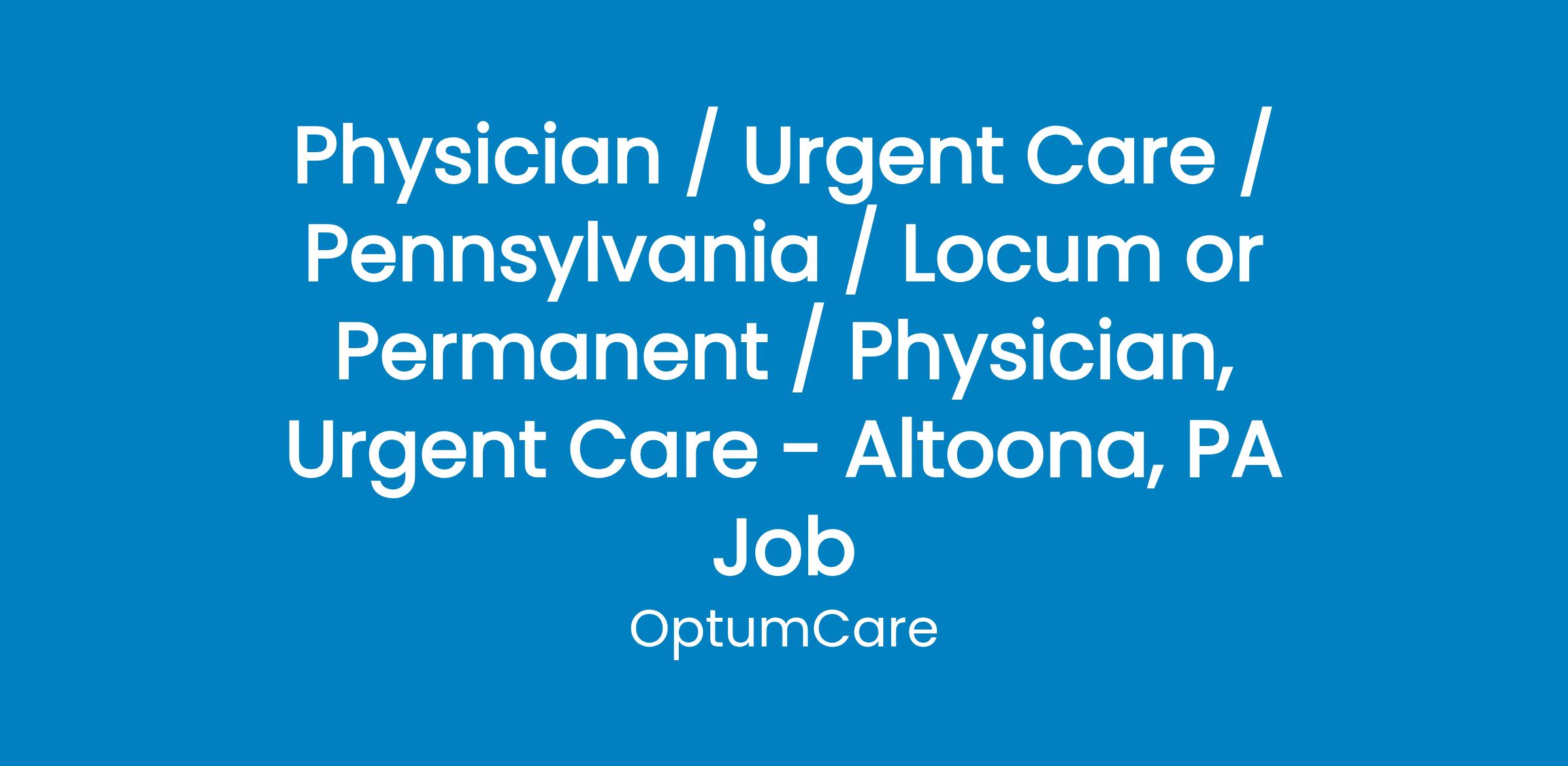 Physician / Urgent Care / Pennsylvania / Locum or Permanent / Physician, Urgent Care - Altoona, PA Job