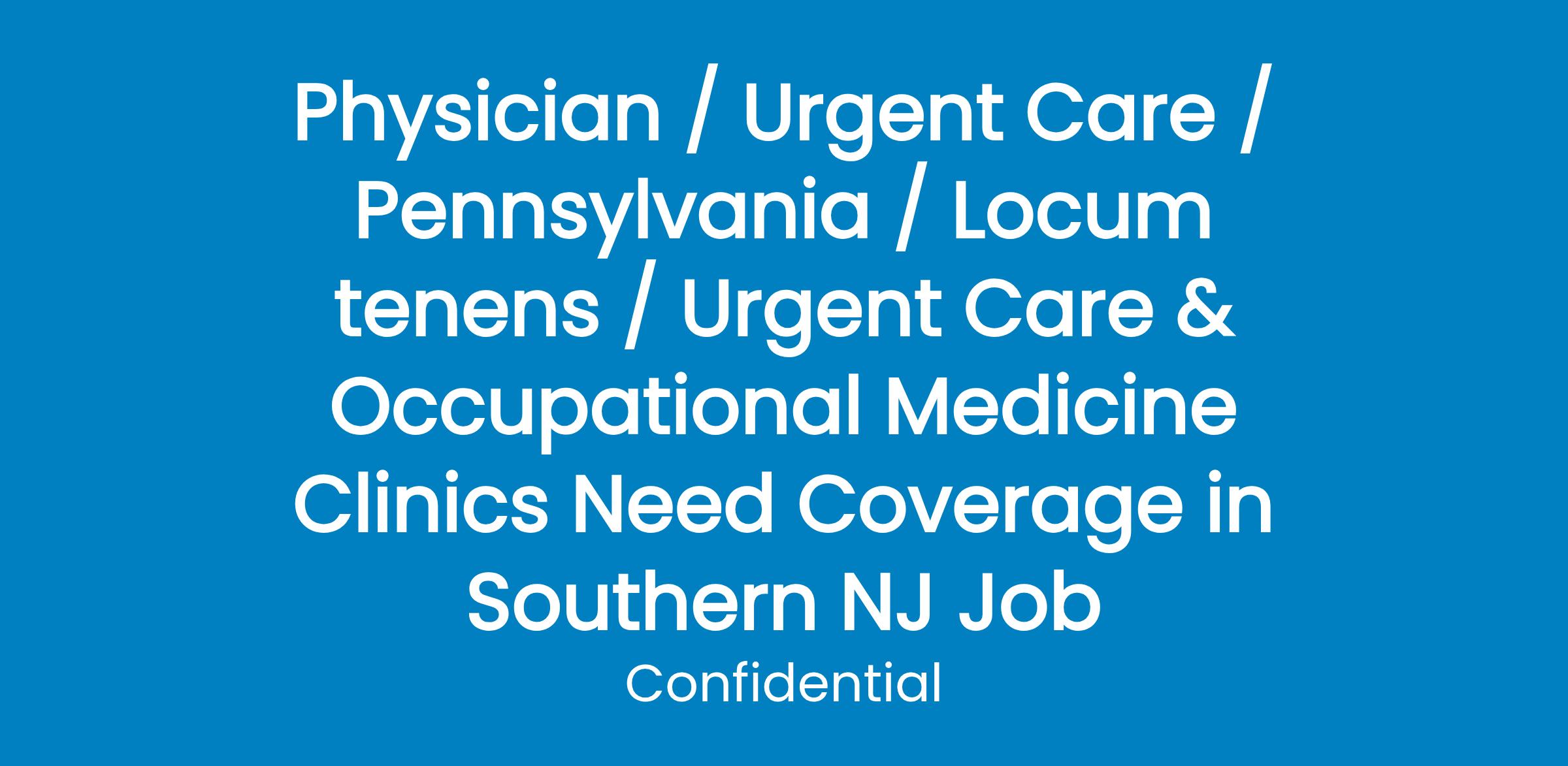 Just across the bridge from either clinic, Philadelphia is a great city to visit during the fall season! Visit local festivals, breweries and pumpkins patches. Watch an Eagles football game and explore historic landmarks or chow down on a Philly cheese steak after your shift. Multiple sites are seeking coverage. Clinics open 7 days a week. Choose from 8 or 12 hour shifts. November start dates with quick credentialing. REQUIREMENTS: BC/BE with recent Emergency Medicine, Urgent Care, Occupational Medicine experience. Will accept General Practitioners, Family Medicine or Emergency Medicine candidates. Must be DOT certified to work the Occupational Medicine Clinic. Active New Jersey state license. Travel/lodging/malpractice insurance covered. Call Western Healthcare at 1-, or contact Angie Watkins at .