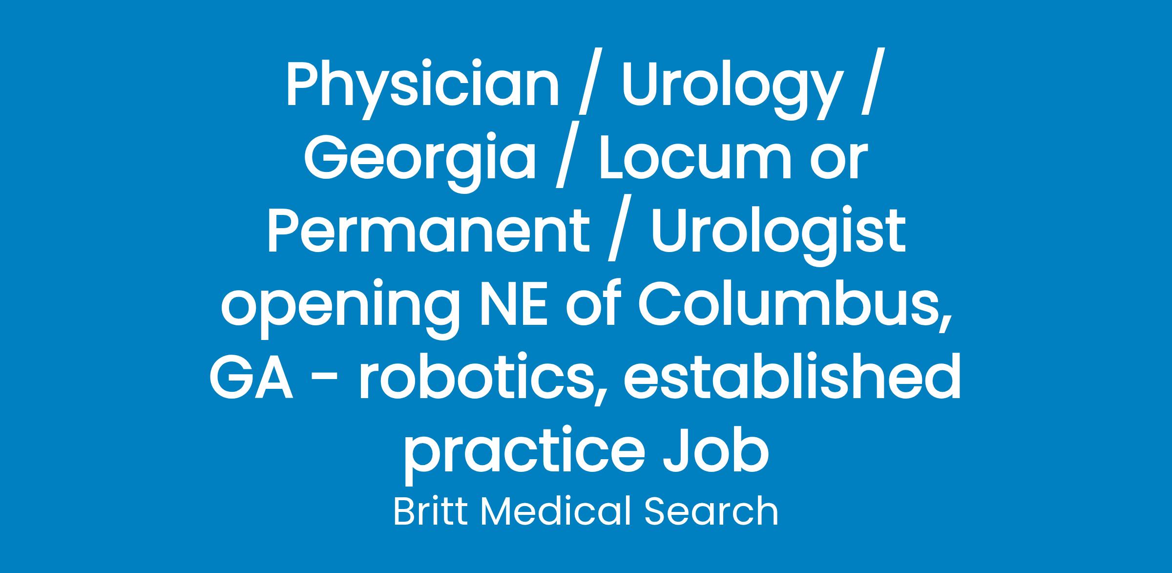 Seeking BE/BC Urologist to join talented team. The best of both worlds, the area is a quiet community, conveniently located approximately an hour from Hartsfield-Jackson International Airport.