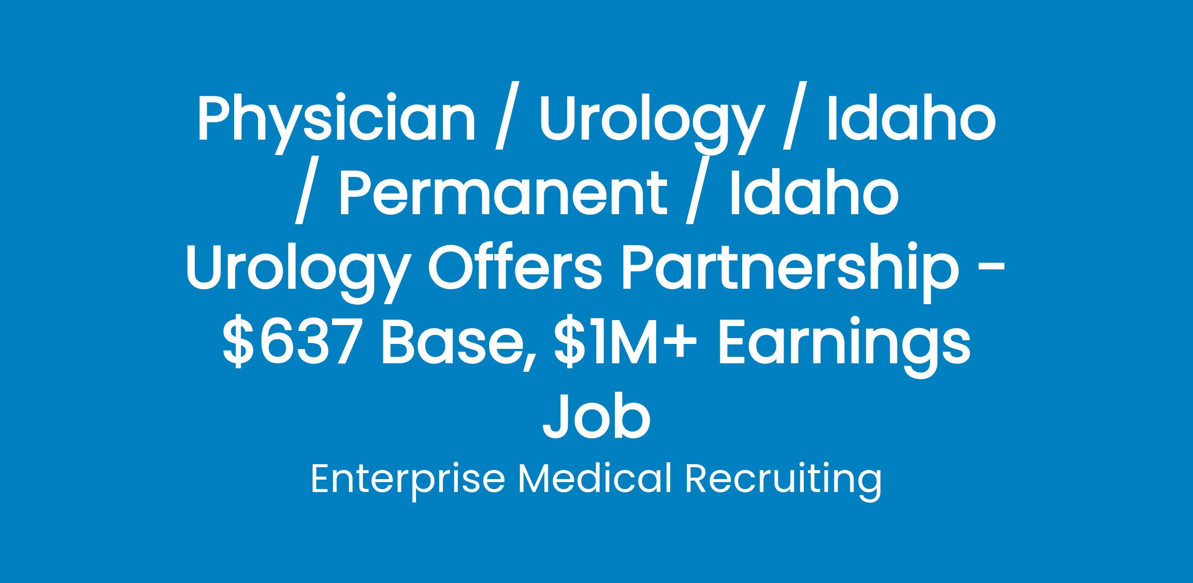 Mountain View Hospital, a physician-owned health system based in Idaho Falls, is expanding Urology services into Pocatello, ID. With a lack of Urologists in the area, this is a prime opportunity to capture an under-represented market while establishing a new, fully supported practice.