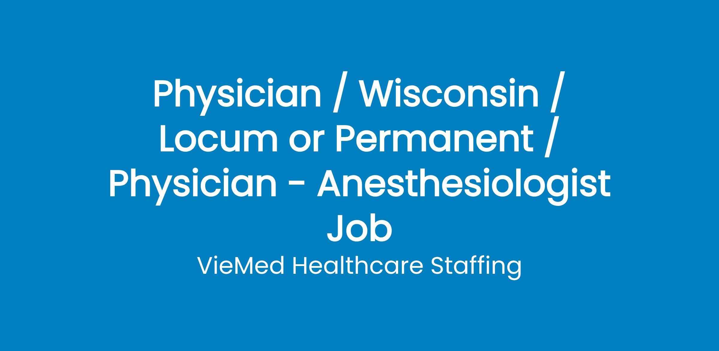 Physician / Wisconsin / Locum or Permanent / Physician - Anesthesiologist Job