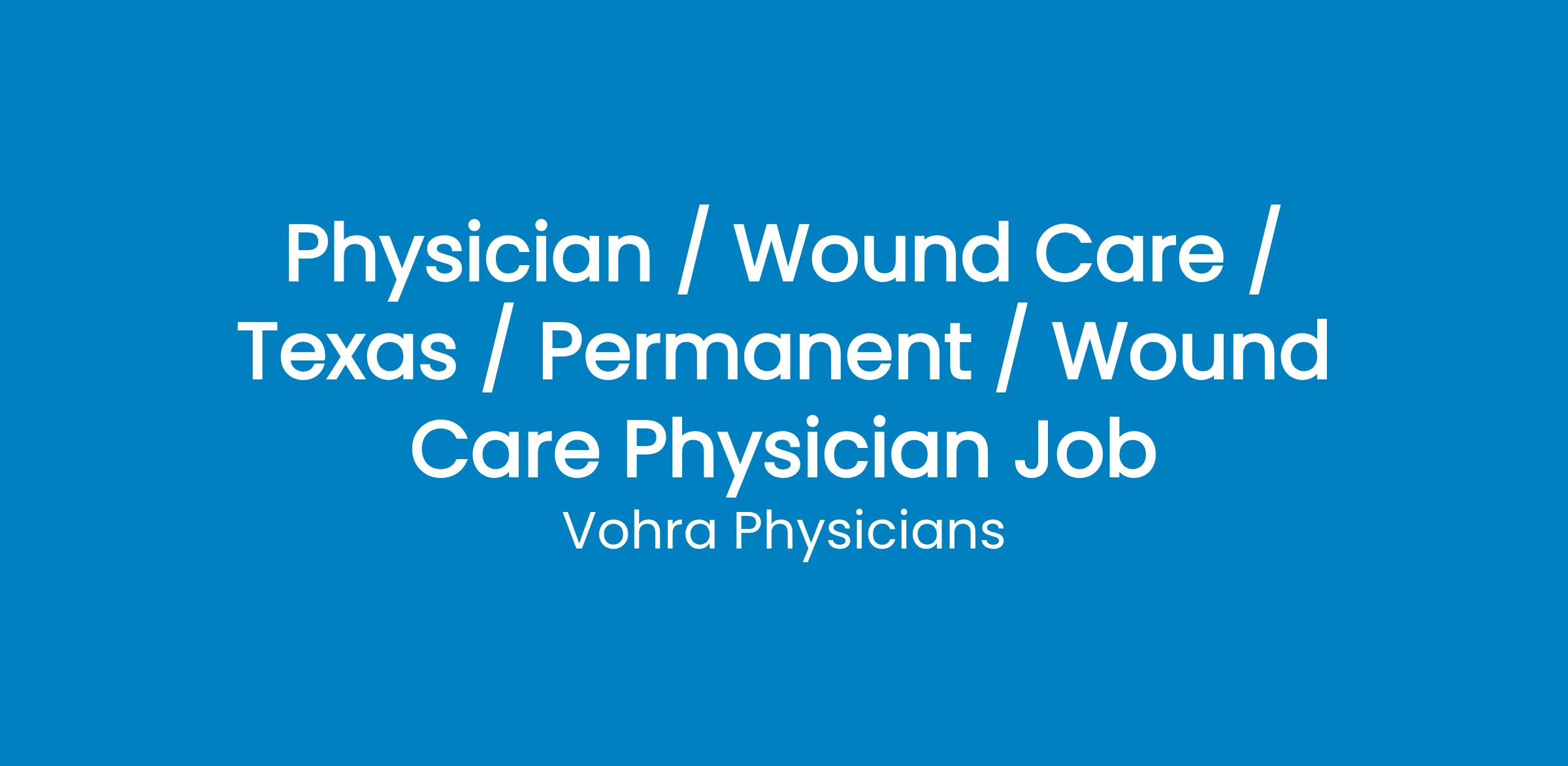 Part-Time Wound Care Physician Position in Abilene, TX with National Wound Physician Group