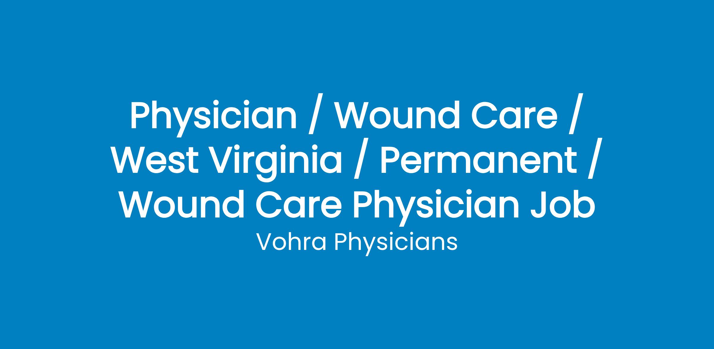 Part-Time Wound Care Physician Position in Charleston, WV with National Wound Physician Group
