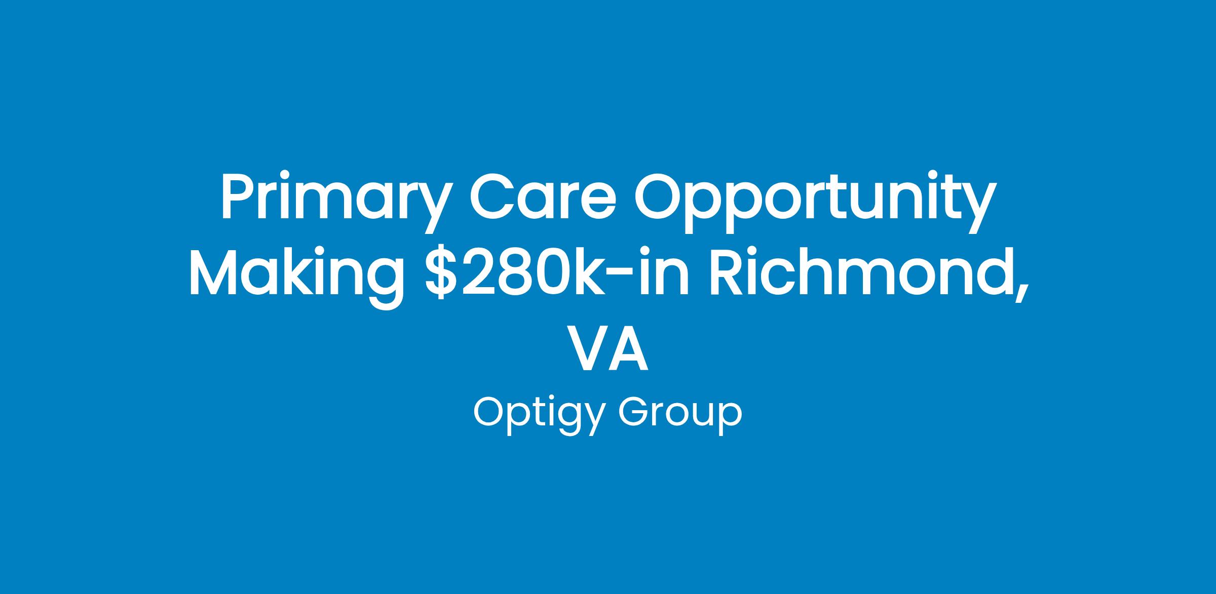 Primary Care Physician Richmond, VACOMPENSATION: Salary $260k+ Incentive Bonus + Signing Bonus up to $50k We are a physician-led and mission-driven, primary care organization, is currently one of the most successful full- provider, transforming care of the neediest population. Our mission is to honor seniors with affordable VIP care that delivers better health. In order to achieve our vision and deliver our mission, we need the best primary care providers and clinical leaders that are seeking to fulfill purpose and personal opportunity and join the team. Transportation is provided to patients that need it at no charge.Role: Compensation: Base $260k Bonus: Up to 20k year 1 and goes up as a partner. Partnership: No Buy-in. usually within 12-18 months. 65% have made partner after 1 year. As a partner will make over $300k 18 patients a day Hours: Monday Friday work schedule; Clinic Hours 7:30a 5:00p (last patient is scheduled at 4:15) Work/Life Balance Small Patient Panel 450 patients max Administrative time included in schedule No nights or weekends 100% outpatient Dedicated Care and support team (have your own MA/Scheduler/ Patient Population: Seniors with 3-5 chronic diseases Value Based CareBenefits: Paid Time Off -33 days PTO Comprehensive Benefit Package Health, Dental, Vision and supplemental benefits plans for the provider in their family 401K 5.5% match $3,500 + 1 weekClinic offers: Inhouse Consulting Specialist: Cardiology, Podiatry and more Holistic Health Services: Acupuncture, Tai Chi, Yoga and Nutrition Door to Door TransportationRequirements: Board Certified/Board Eligible in: FM, IM or Geriatric Medicine Open to Residents and Fellows Open to Visa CandidatesFor more information contact: Stephen Kanfer 954 _ 263 _5115