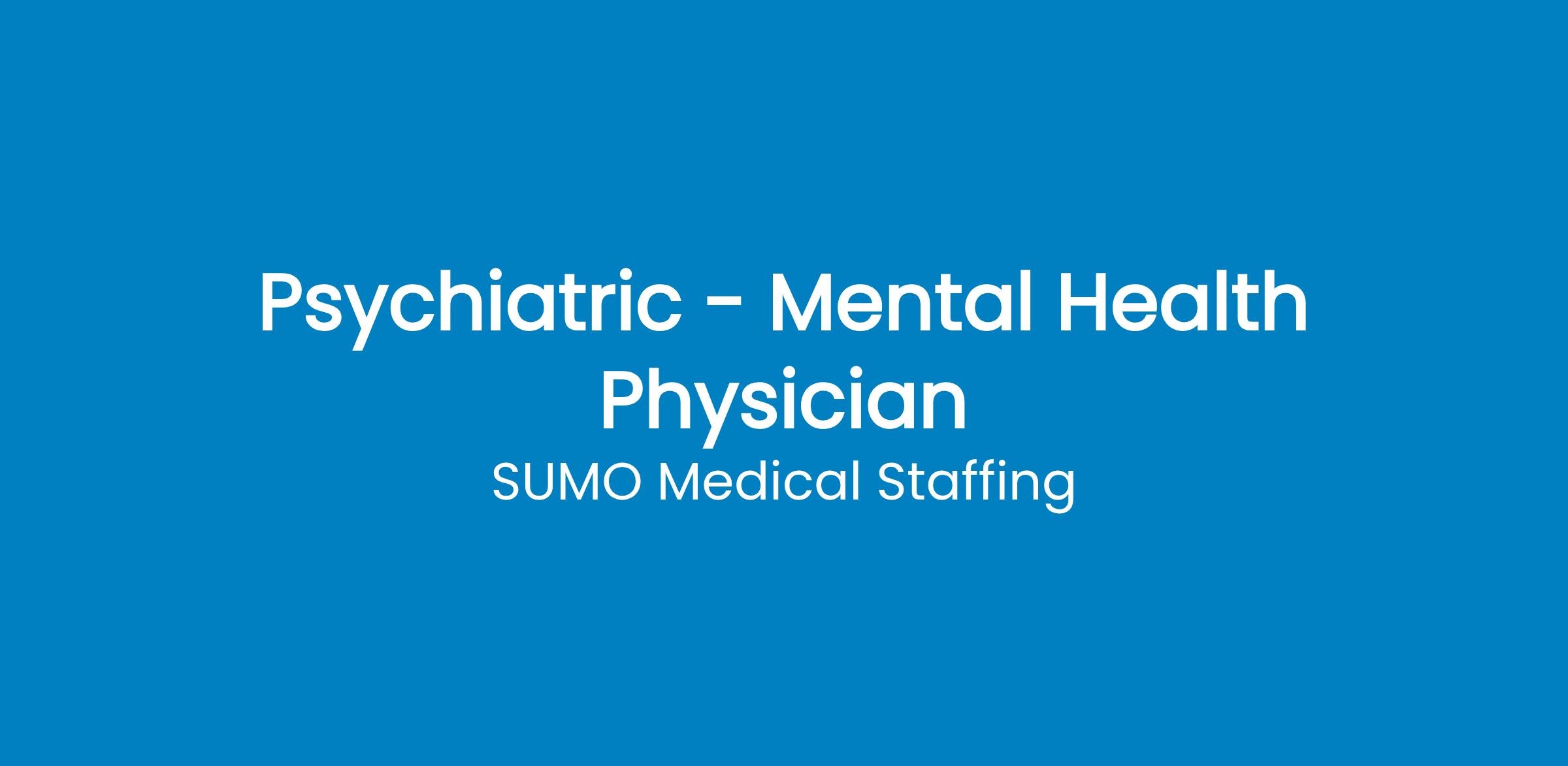 The post Physician Psychiatry Locum near Crystal City, Missouri (MO) appeared first on Sumo Medical Staffing .