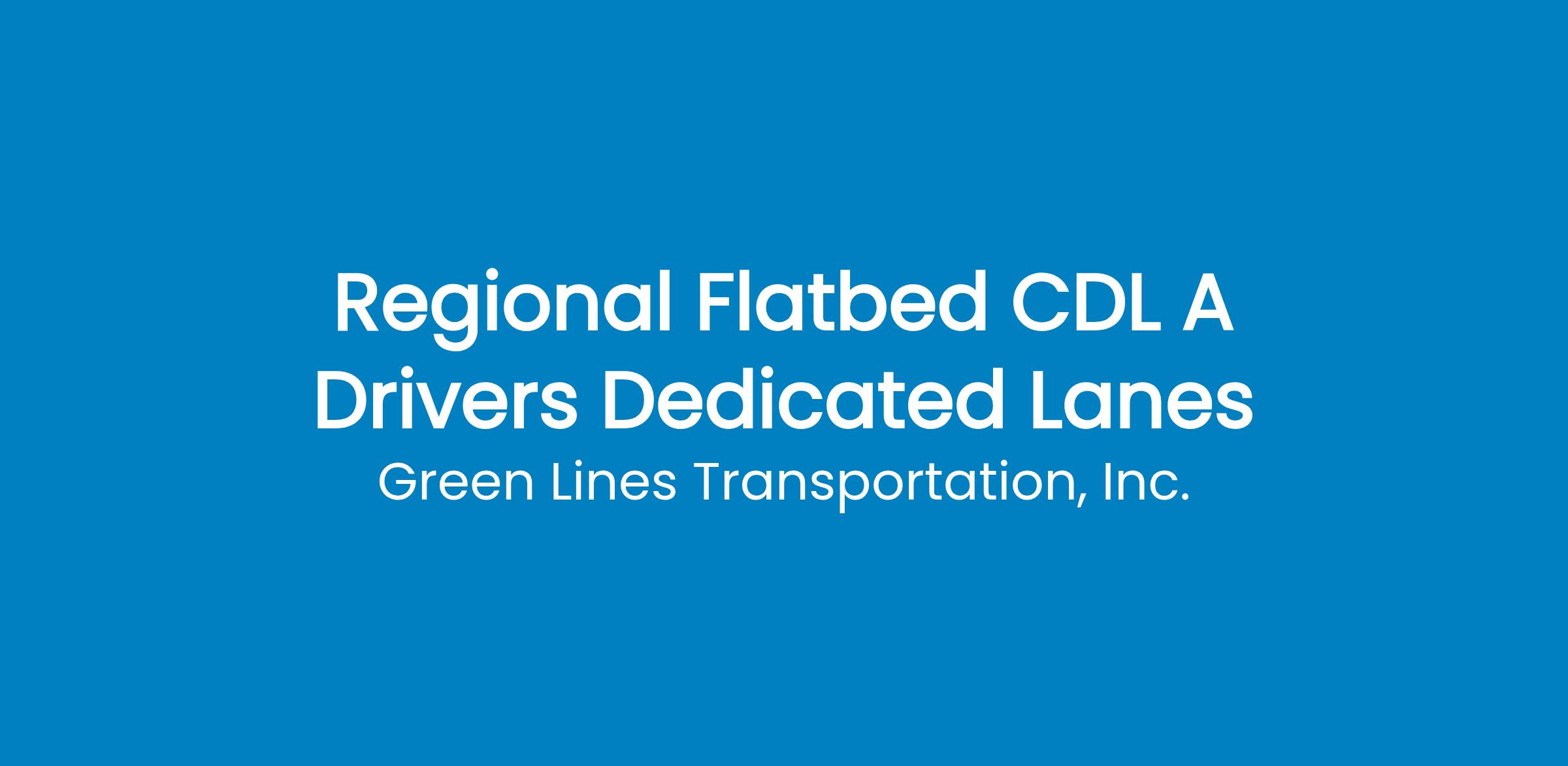 Call ex. 218 Immediately! These opportunities won t last long! Green Lines Transportation is looking for CDL A Flatbed Drivers. We are busy. We have been Family Owned and Operated for over 30 years. We are one of the top paying carriers in the Industry while maintaining excellent Safety Scores and State of the Art Equipment. Home weekends and frequently during the week.