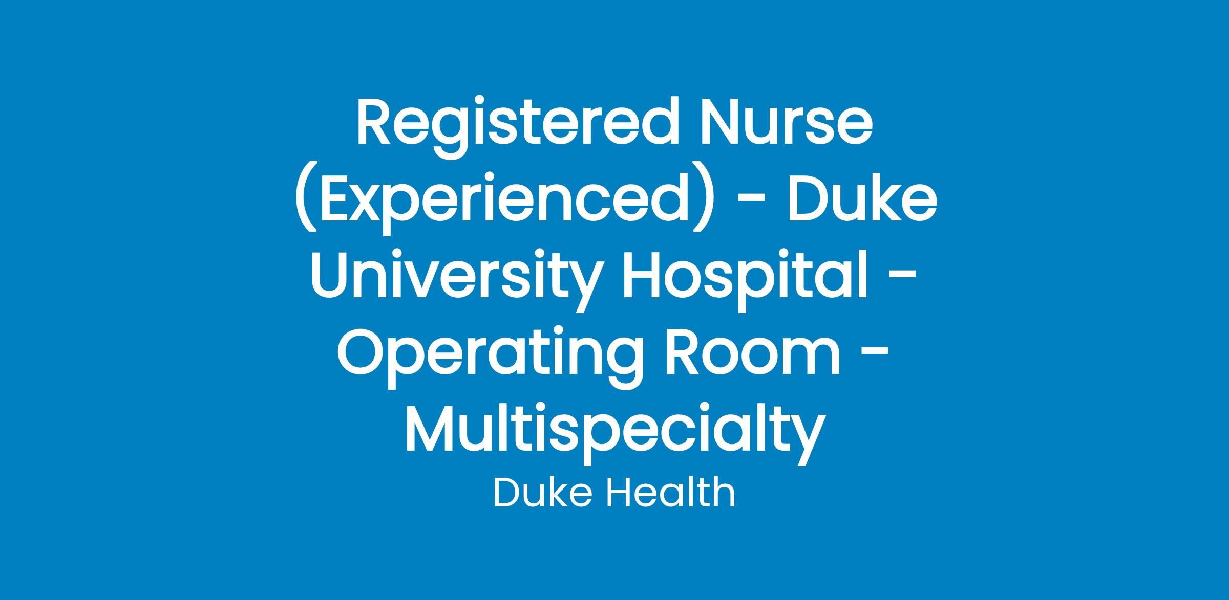 Registered Nurse (Experienced) - Duke University Hospital - Gynecology Operating Room - Durham