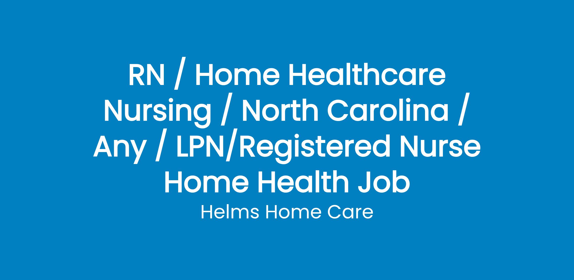 Job Description:Helms Home Care is seeking to hire a Licensed Practical Nurse or Registered Nurse for hourly private-duty home care in the Denver NC area for female adult patient care.Pay Range: $26-$28 per hr.Job Type: 10-12 hrs. per day- Day ShiftRequirements:Applicants should be familiar with home skilled nursing needs (medication administration, Trach, G tube)Current NC or Compact State nursing license and be familiar and competent in the duties of caring for home health.Must have reliable transportation and be able to communicate promptly with our scheduling personnelWe offer:1:1 carecompetitive pay with Full-Time Benefits available at 30 hours/weekElectronic medical recordsEmployee Benefits (Full-Time Employees):Health insurance with company contributionDental, VisionShort term disability, flex spending accountPTOSimple IRA with 3% Company MatchAbout Helms Home Care:Helms Home Care is a private-duty and infusion nursing services company based out of Denver, NC. Our mission is to serve patients with compassion and personalized care in their homes.