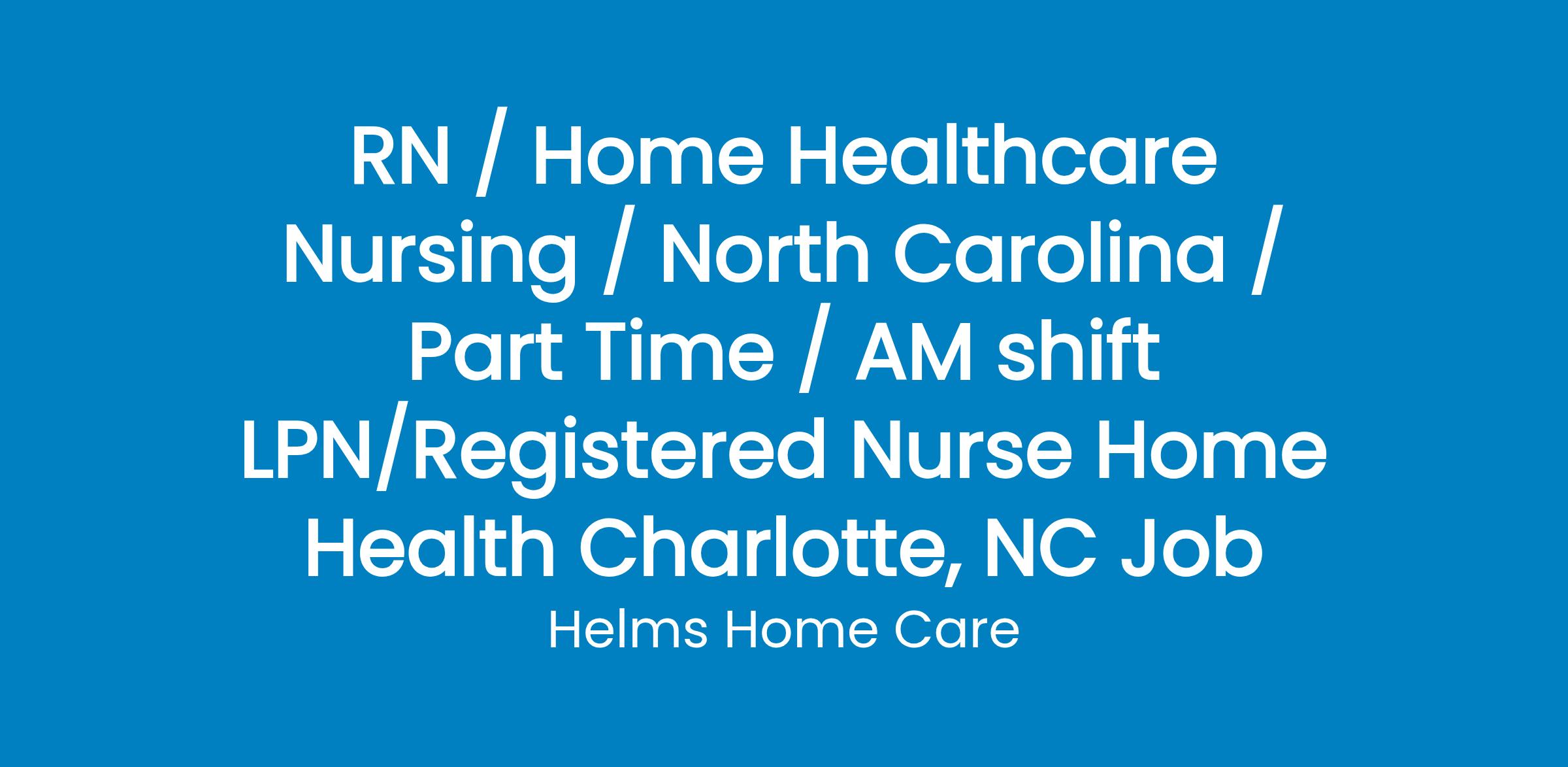 Helms Home Care is seeking to hire several part-time Licensed Practical Nurses or Registered Nurses for hourly private-duty home care. Six hour morning shifts from 6-6:30 AM to 12:30-1 PM several days per week, including weekends. Patients live in and around the greater Charlotte metro areas. Applicants are matched with patients based on their skills, geographic location and availability. Patients range from fully dependent (non-ambulatory with Trilogy machine) to partially dependent. Applicants should be familiar with home skilled nursing needs (medication administration, Trilogy machine, gastrostomy, tracheostomy, ADLs, PROM, lifting/moving, etc.).Applicants should possess a current NC or Compact State nursing license and be familiar and competent in the duties of caring for a home health patient with possible equipment such as a G-tube. Applicants must also have reliable transportation, and be able to communicate promptly with our scheduling personnel. Pay is based on experience and is competitive with Full Time Benefits available at 30 hours/week. Full time benefits include health with company contribution, dental, vision, short term disability, flex spending account, paid time off, and IRA with company match.Helms Home Care is a private-duty and infusion nursing services company based out of Denver, NC. Our mission is to serve patients with compassion and personalized care in their home.Job Types: Part-timePay range: $28-$35 per hr