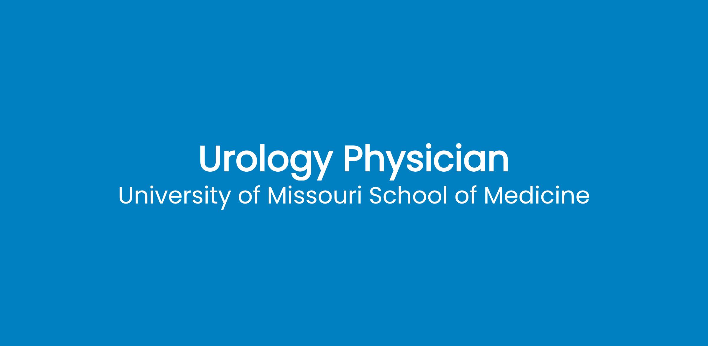 Job DescriptionThe University of Missouri Department of Surgery, Division of Urologic Surgery is seeking a Urologist to join their high-volume practice in the Division of Urology at MU Healthcare. The 7-faculty division has patient care responsibilities at the University Hospital, Women's and Children's Hospital, Ellis Fischel Cancer Center, and the Harry S. Truman Memorial VA. An ACGME approved residency matriculating 2 residents per year and Advanced Practice Providers round out the well-integrated and collaborative team.